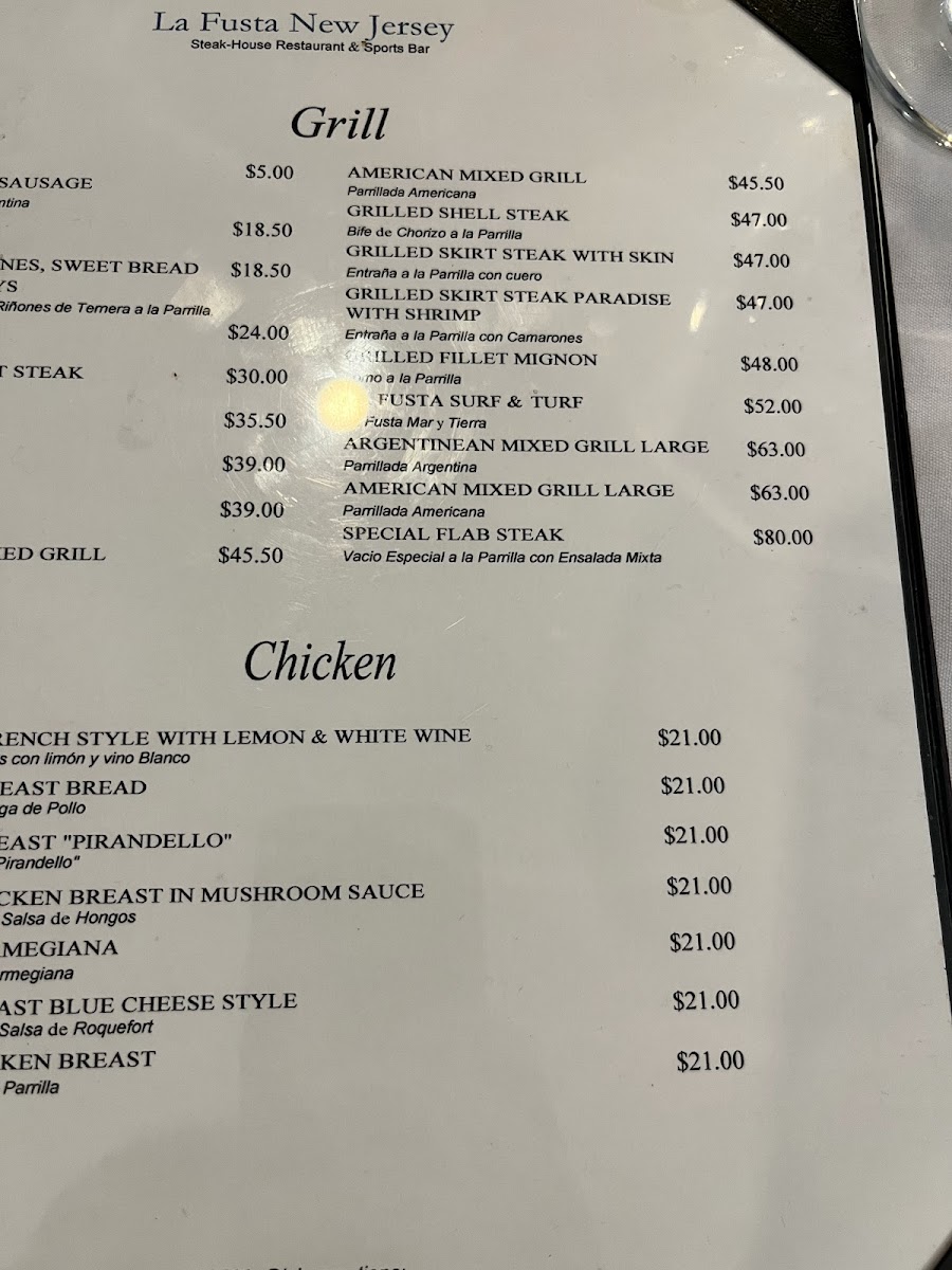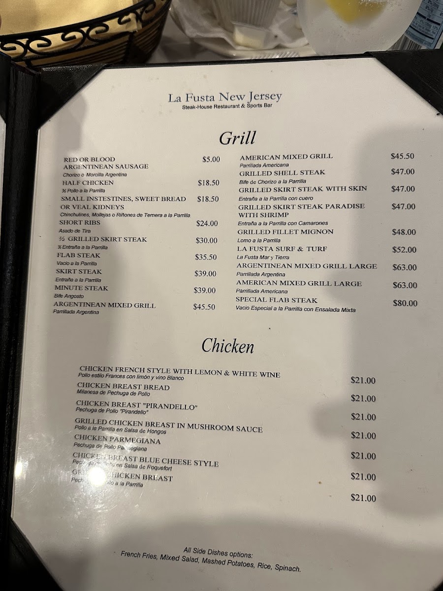 La Fusta New Jersey Menu